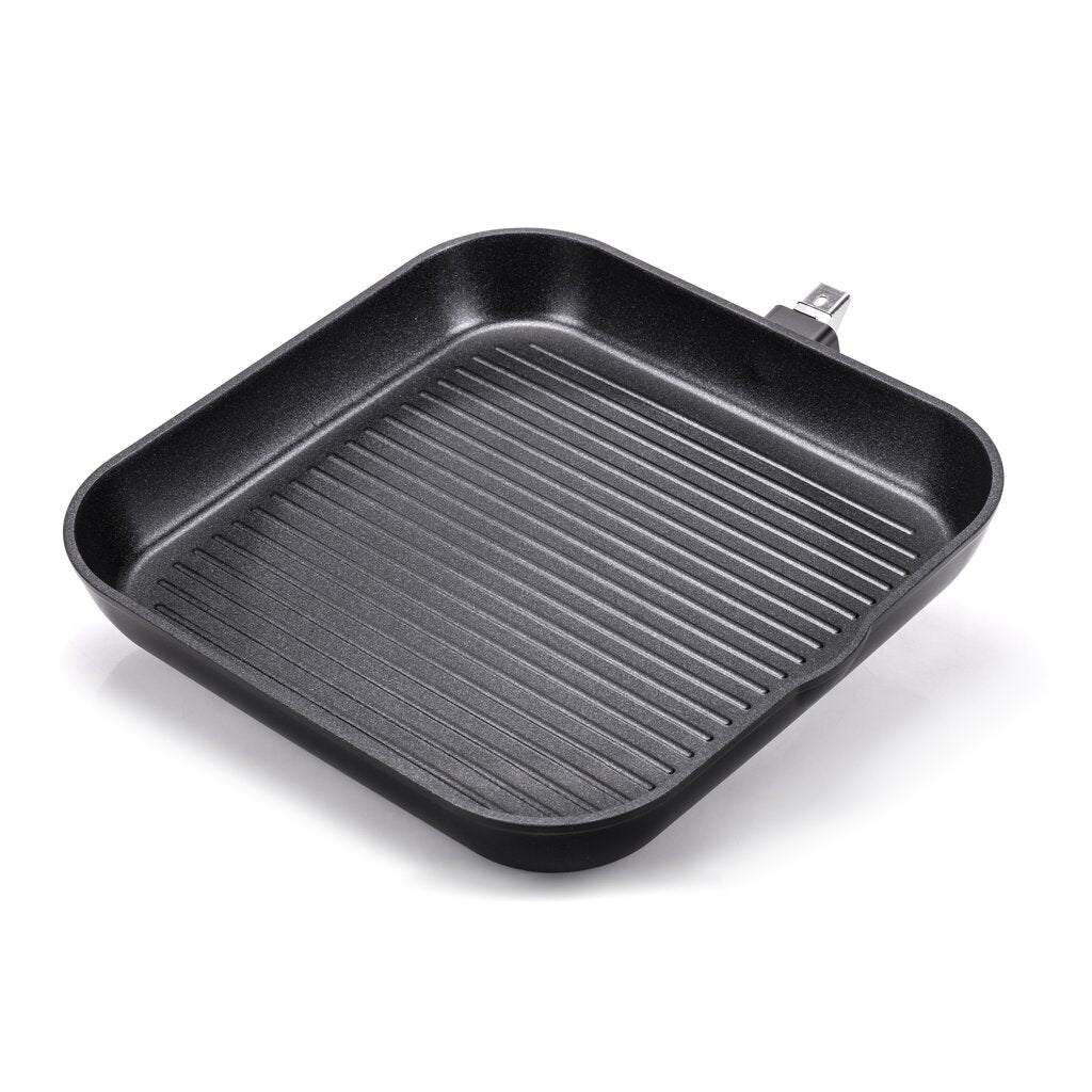 BISTECCHIERA 28 CM B.FUTURE CLICK BERNDES ALLUMINIO FORGIATO: Per realizzare lo Strumento di Cottura viene utilizzato un Disco di Alluminio di alto spessore che viene poi Forgiato in fase di Formatura così da garantire una maggiore resistenza. Per la realizzazione vengono impiegate solo Leghe Adatte al Contatto con gli Alimenti. Le leghe autorizzate non contengono Arsenico, Piombo, Nichel o Cadmio.