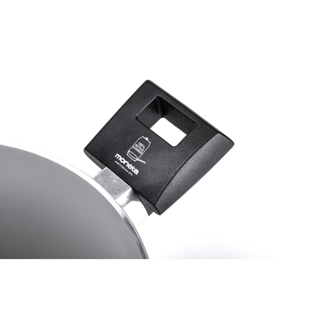 Manici Atermici in Bakelite:I manici sono realizzati in Bakelite per evitare il surriscaldamento. Il suo design, puramente italiano, consente una presa morbida e sicura, garantendo una cottura sicura senza il rischio di scottature. La Bakelite è un materiale termoindurente, che rimane freddo anche durante l'uso.